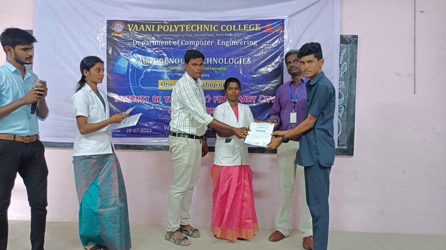 Department of computer Engineering and Autogenous Technology Pvt.Ltd organized one day workshop on Internet Of Things(IOT) for Smart city Applications held on 28.07.2023