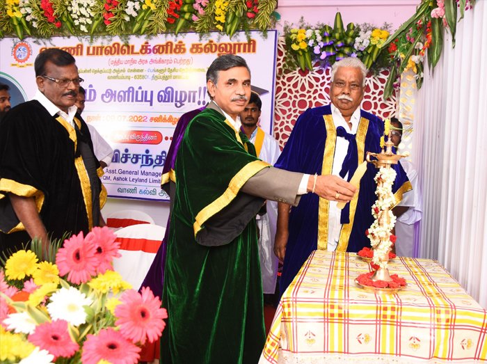 On July 9, 2022, Vaani Polytechnic College in Vaniyambadi held its graduation ceremony in Swami Vivekananda Hall.